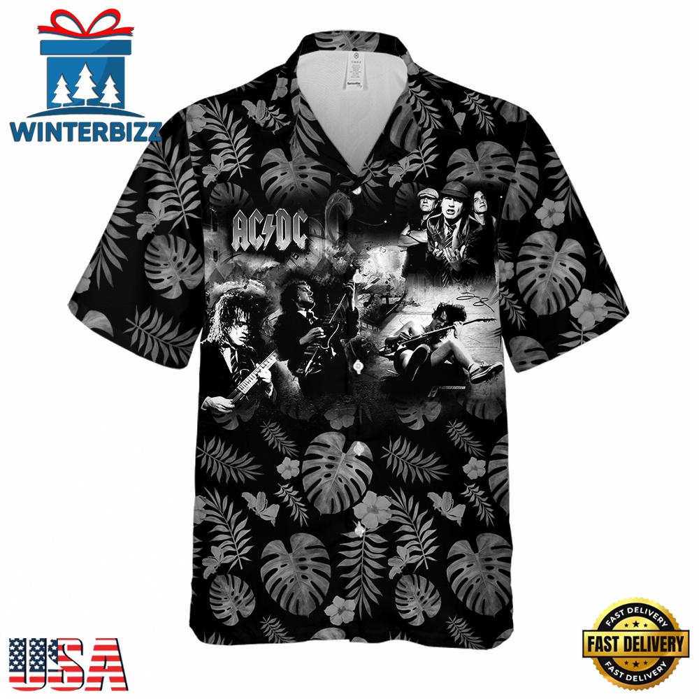 Photos Of ACDC Rock Band Tropical Legends Art Flowers Pattern Hawaiian Shirt
