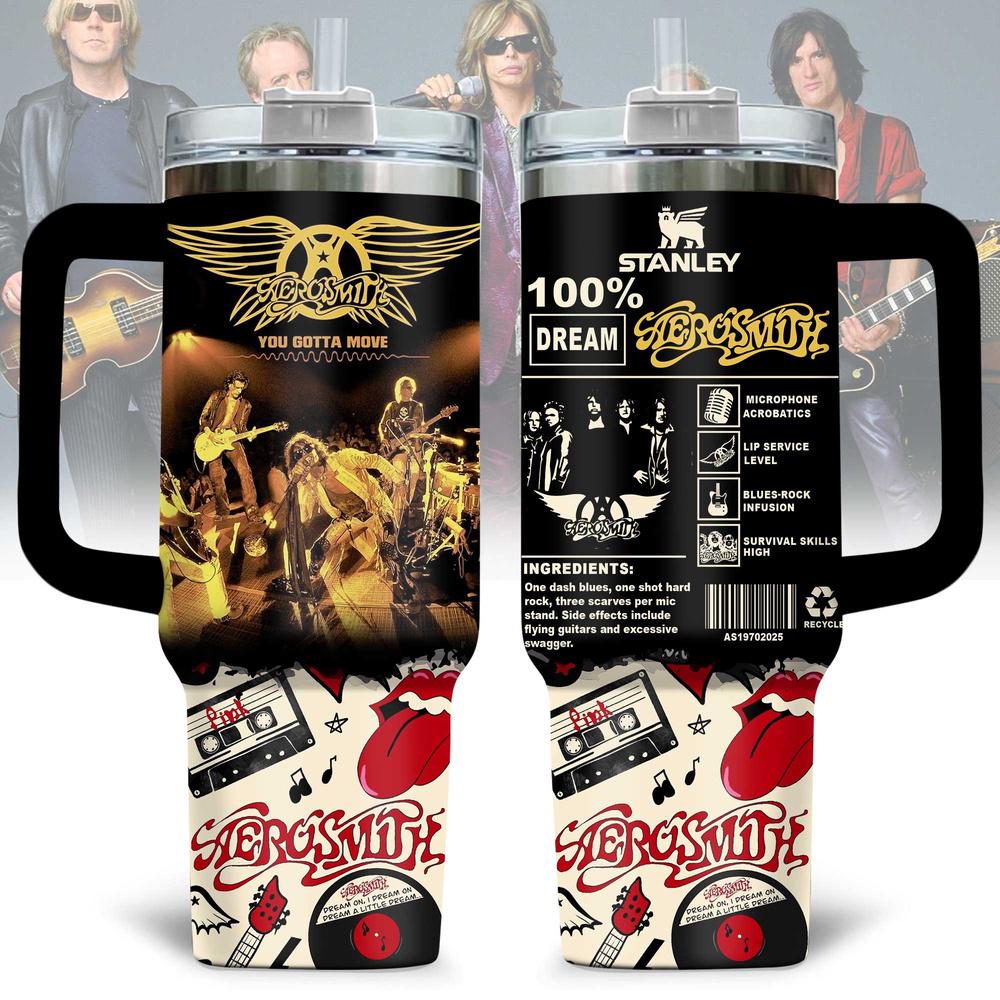 Aerosmith Music Pattern Tumbler 40Oz Handle For Fan