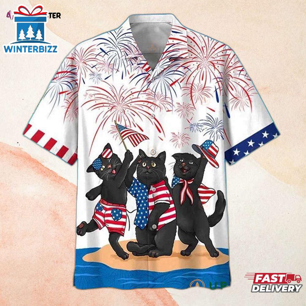 Photos Of American Flag Black Cat Hawaiian Shirt