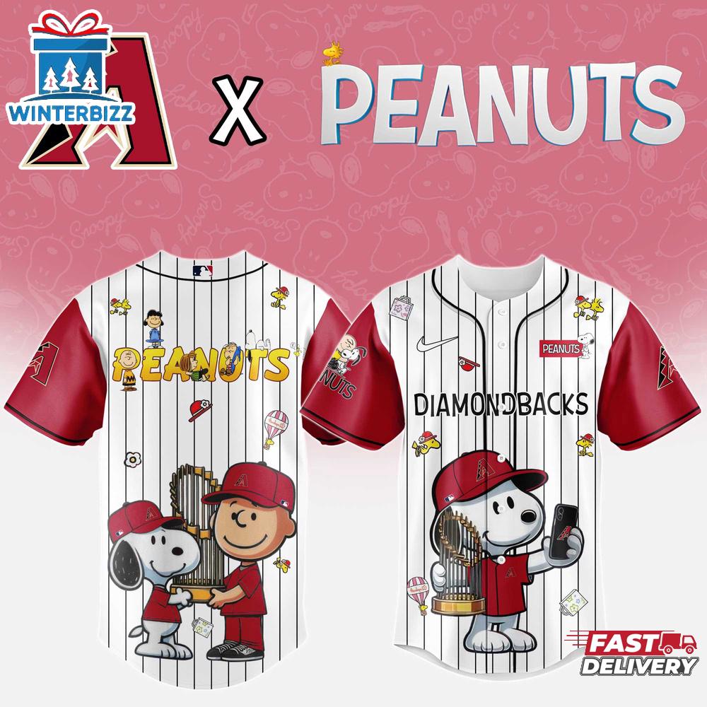 Photos Of Arizona Diamondbacks MLB x Peanuts Baseball Jersey Shirt