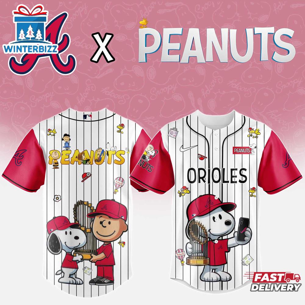 Photos Of Atlanta Braves MLB x Peanuts Baseball Jersey Shirt