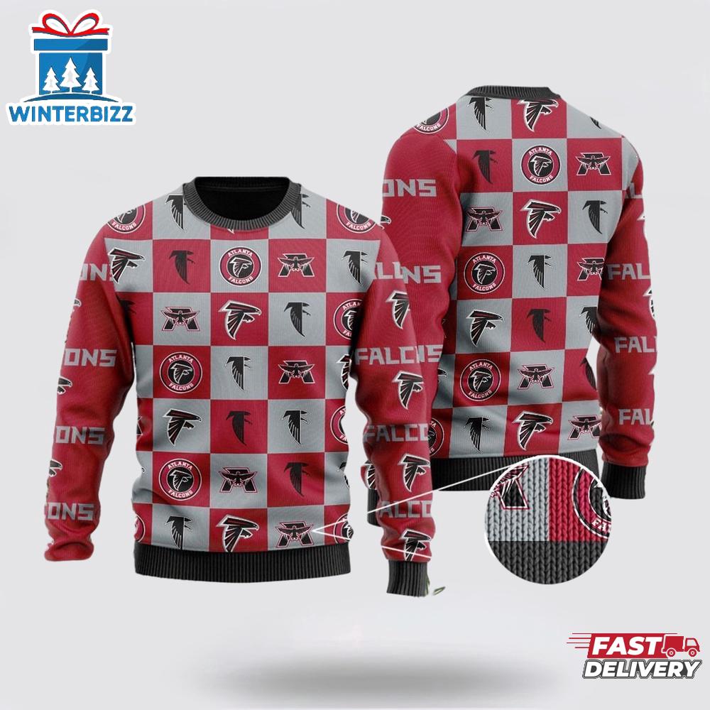 Photos Of Atlanta Falcons Logo Checkered Flannel Ugly Christmas Sweater