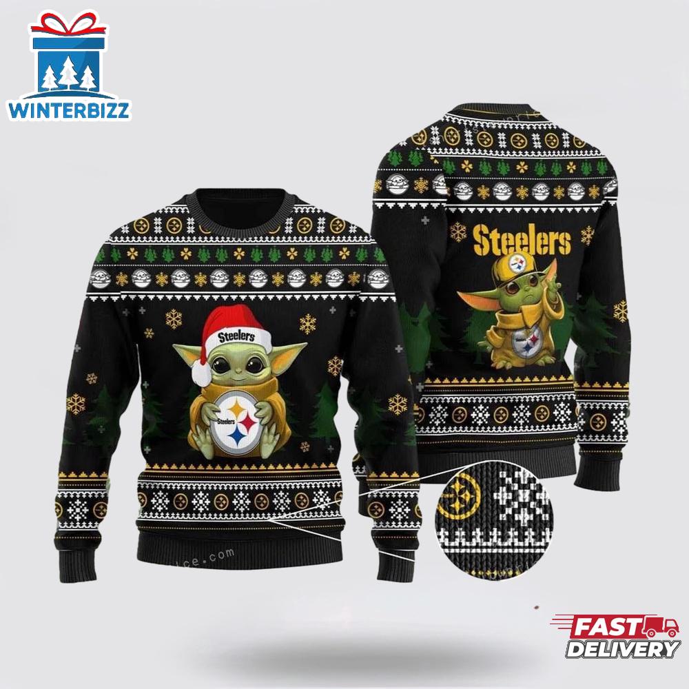 Photos Of Baby Yoda Love Pittsburgh Steelers Ugly Christmas Sweater Shirt