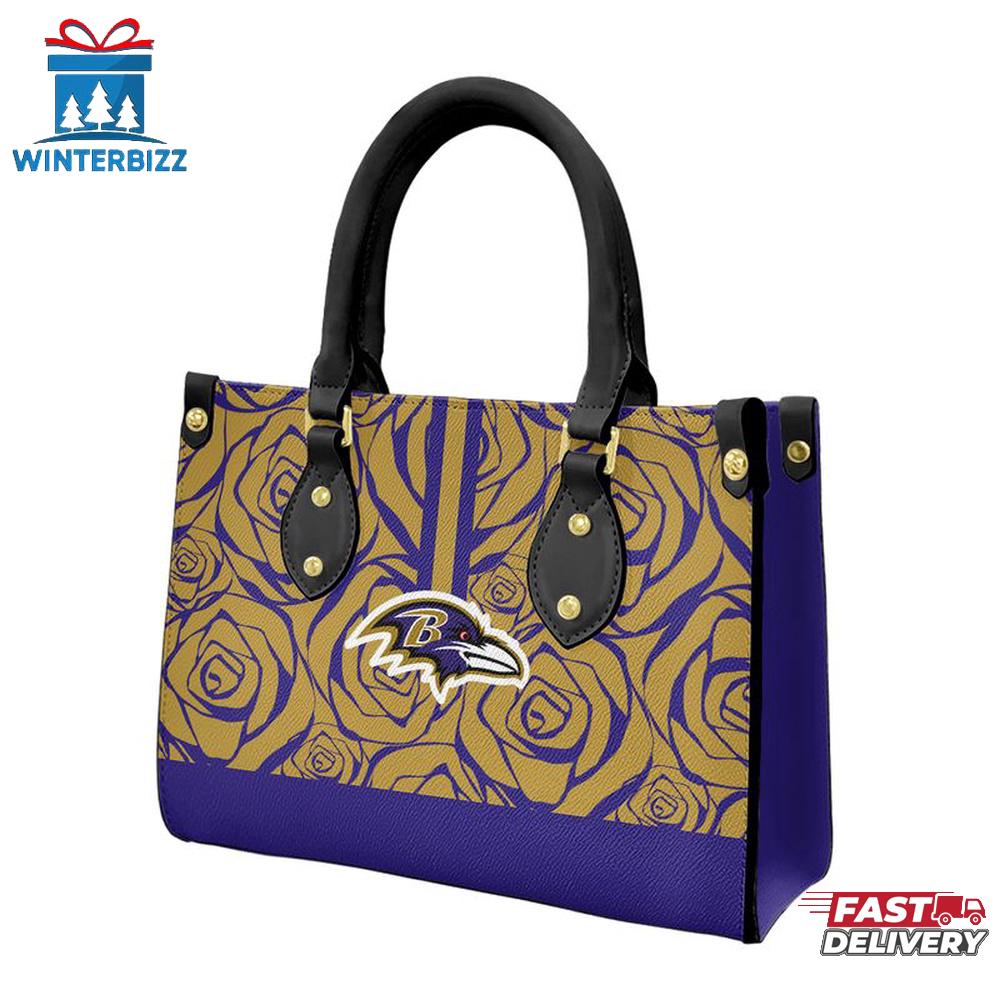 Product details: Baltimore Ravens Rose Pattern NFL Leather Handbag