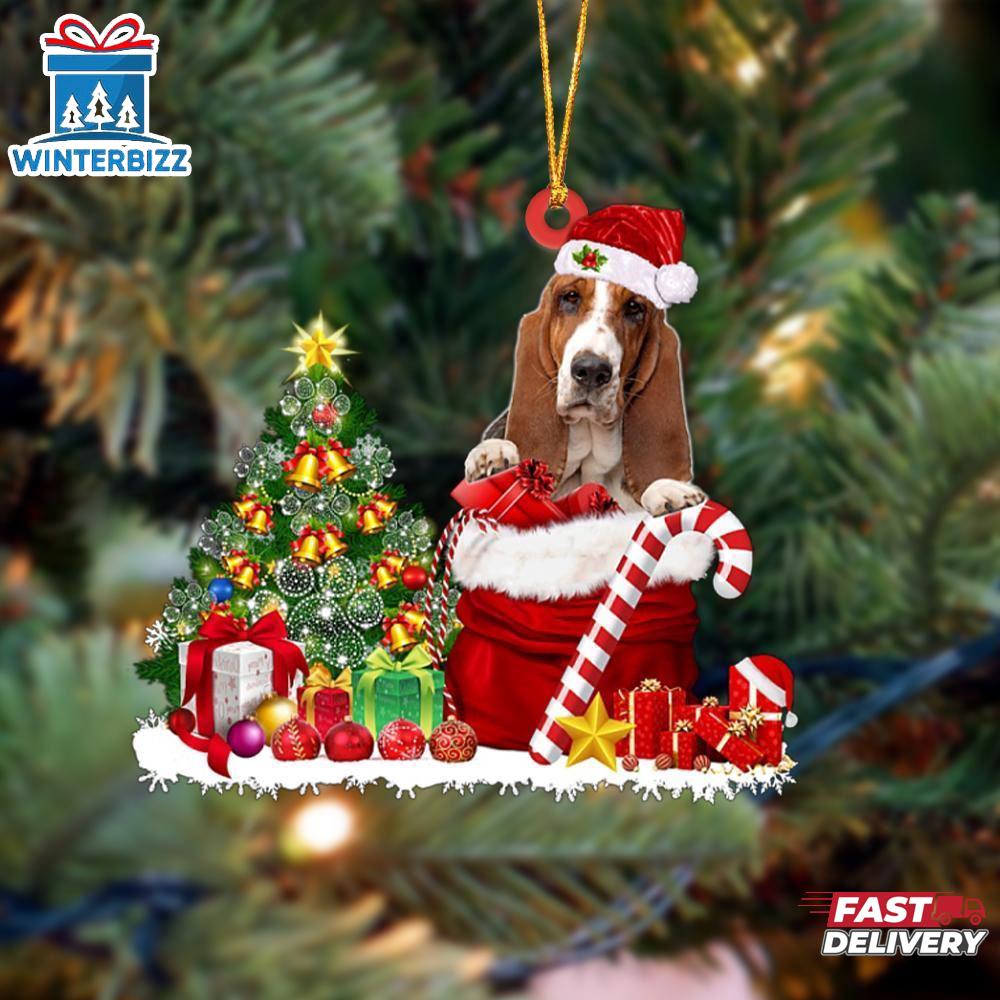 Photos Of Basset Hound Gift Bag Merry Holiday Decor Christmas Ornament