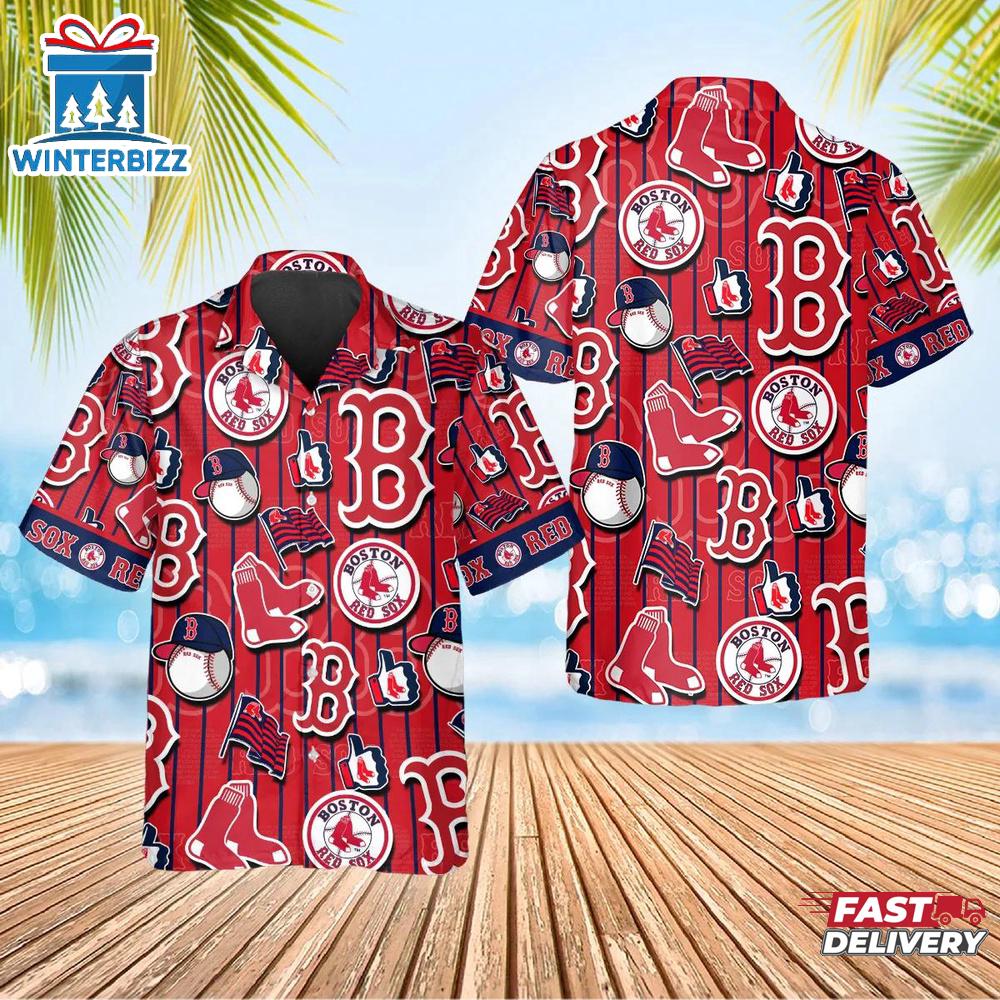 Photos Of Boston Red Sox Pinstripe Logo Collage Summer Hawaiian Shirt