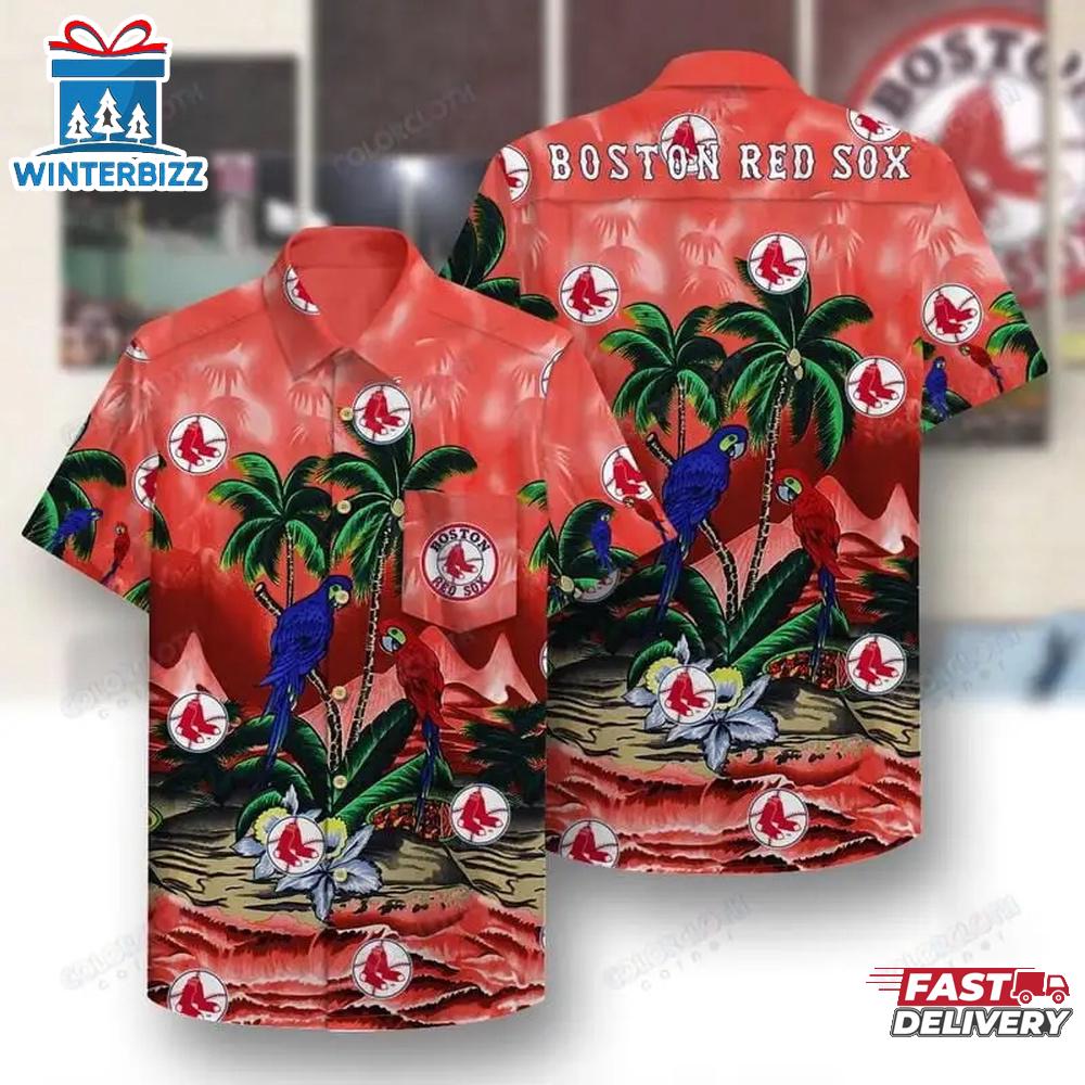 Photos Of Boston Red Sox Tropical Paradise Parrot Summer Hawaiian Shirt