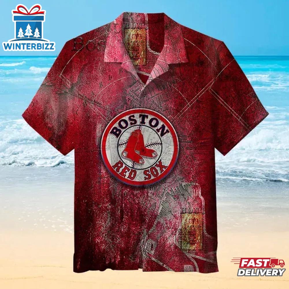 Boston Red Sox Vintage Map Graphic Summer Hawaiian Shirt