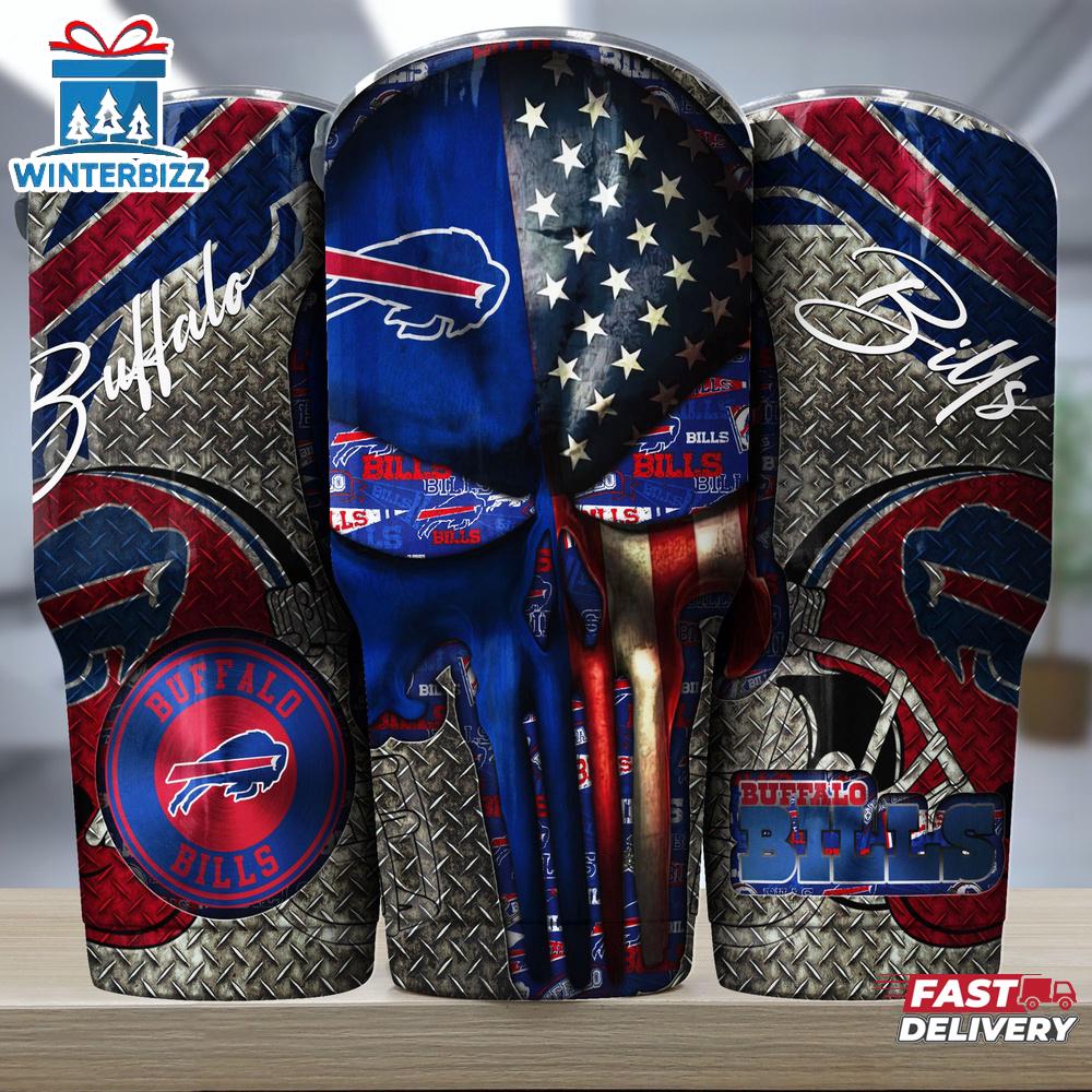 Photos Of Buffalo Bills NFL Skull Iron Pattern Tumbler