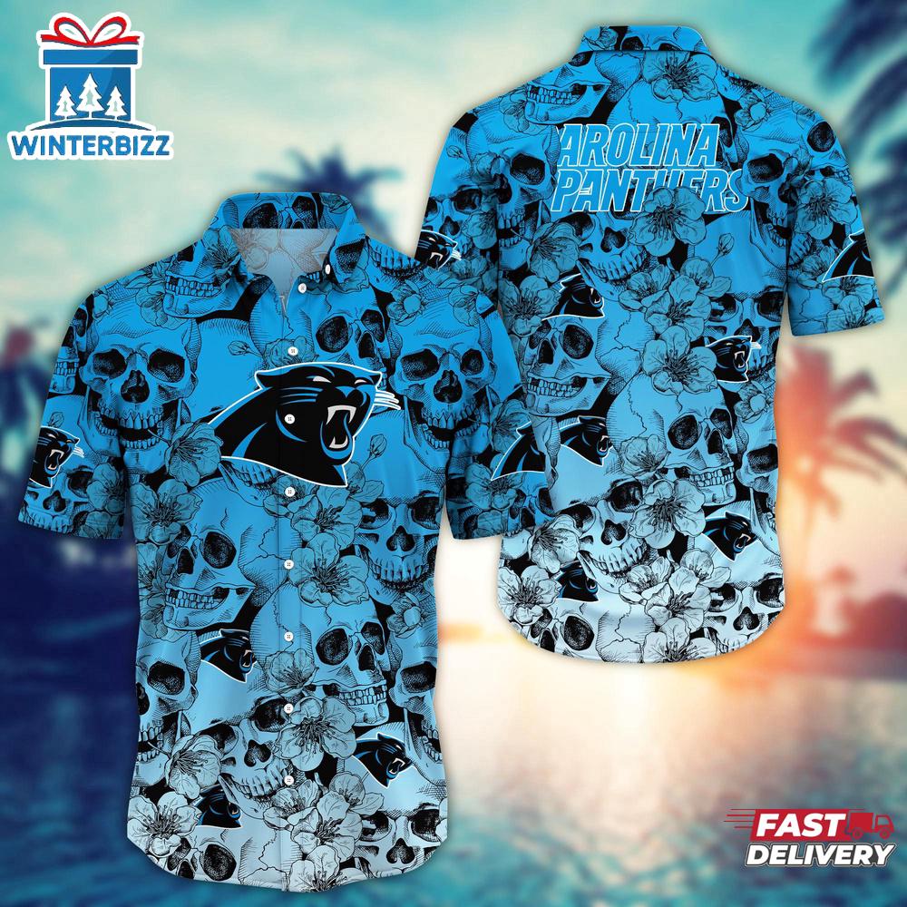 Photos Of Carolina Panthers Skull Pattern NFL Hawaiian Shirt