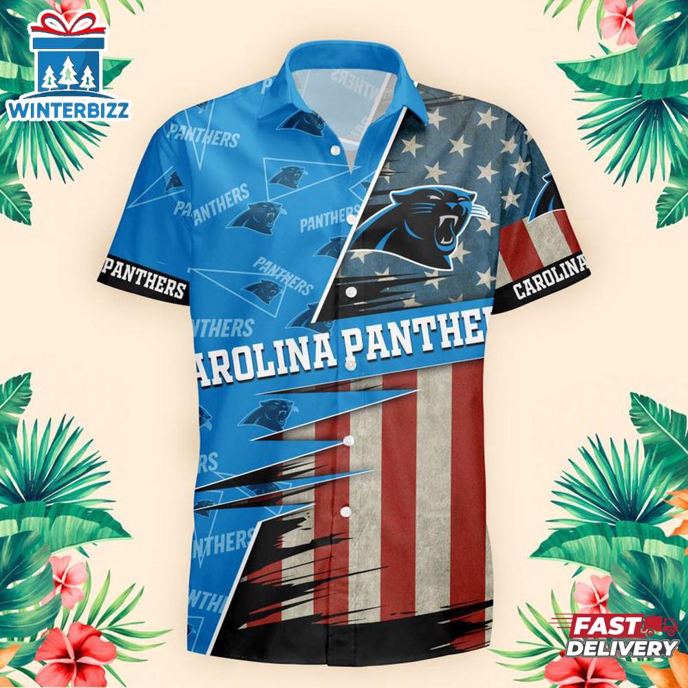 Carolina Panthers US Flag Pattern Hawaiian Shirt