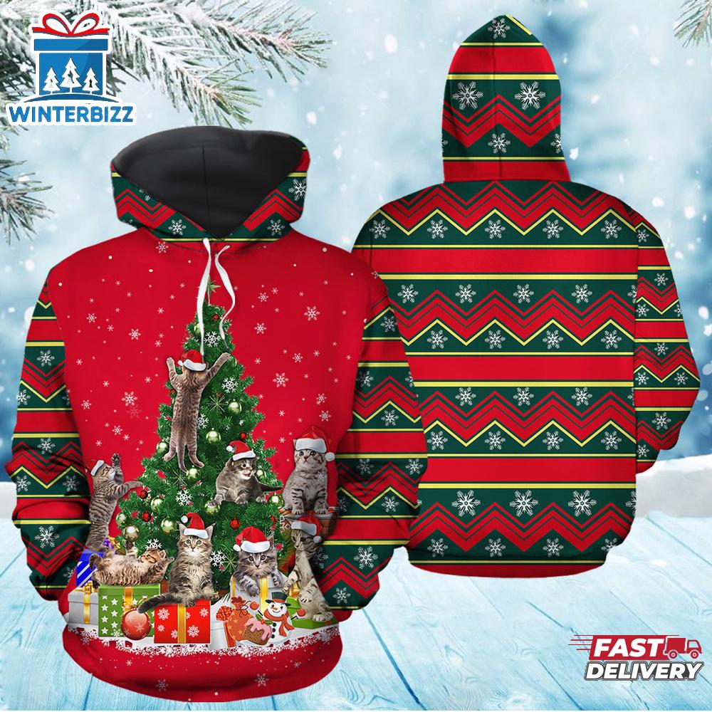 Photos Of Cat Christmas Tree 3D Hoodie Holiday All Over Print Shirt