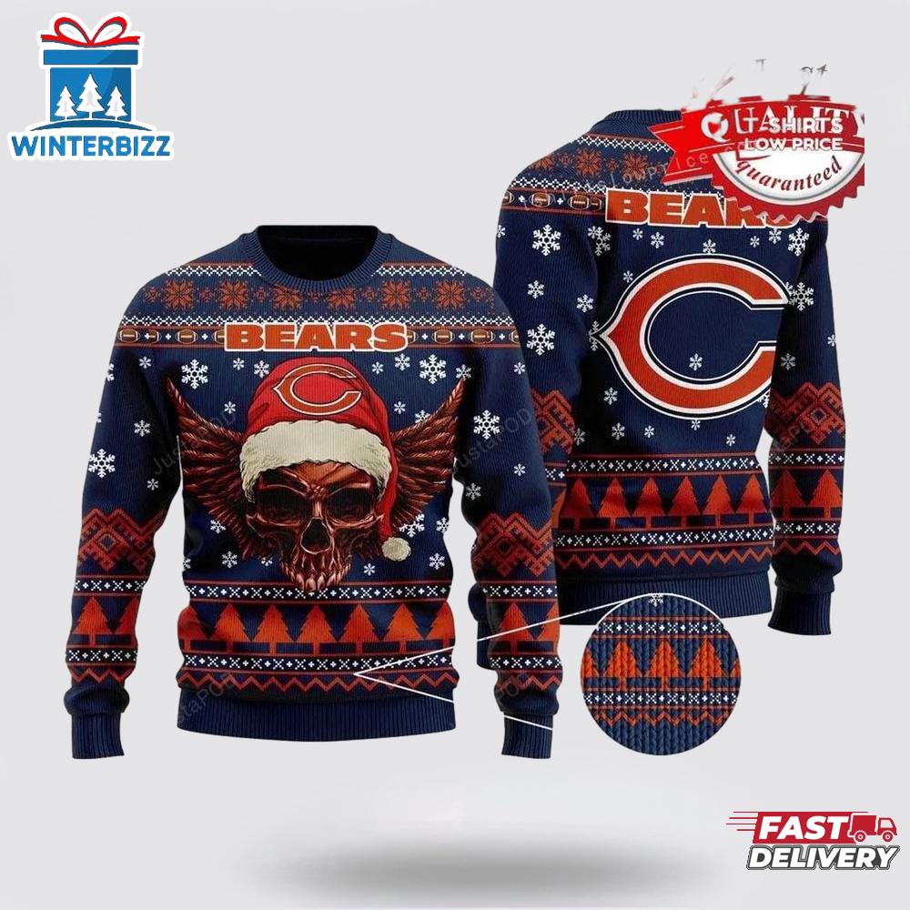Photos Of Chicago Bears Golden Skull Ugly Christmas Sweater Shirt