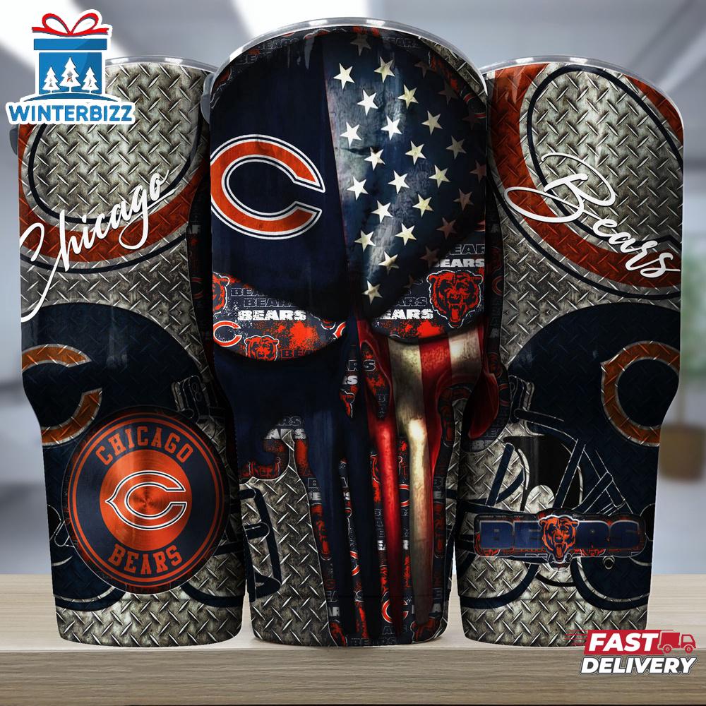 Photos Of Chicago Bears NFL Skull Iron Pattern Tumbler