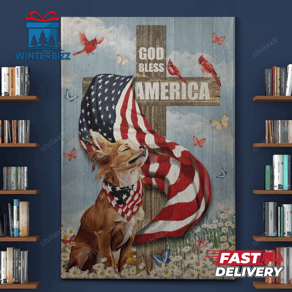 Chihuahua God Bless America Canvas Canvas Decor Ideas Transform your space with our premium canvas poster, featuring high-quality prints that bring your favorite images to life. Made with durable, fade-resistant material, this poster offers a timeless look that adds a touch of elegance to any room. Perfect for showcasing art, photography, or inspirational quotes, it’s an ideal way to personalize your home or office.