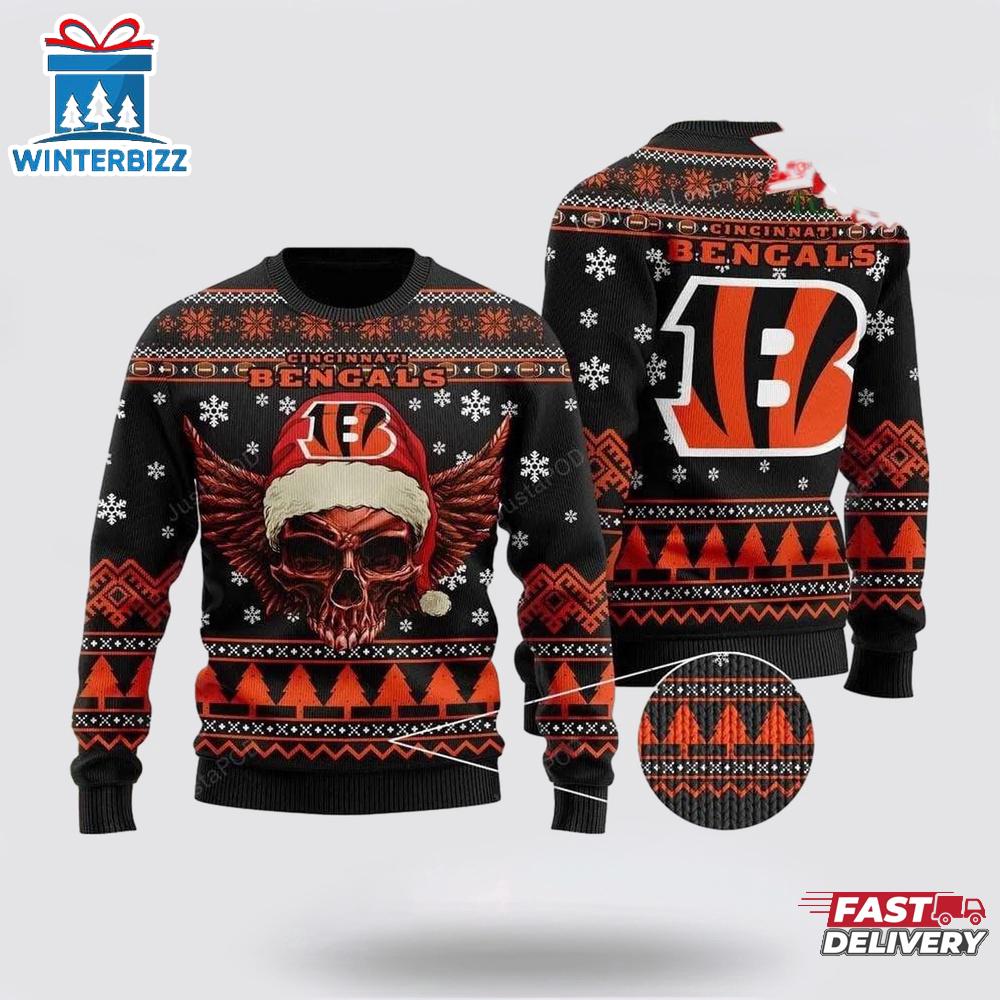 Photos Of Cincinnati Bengals Golden Skull Ugly Christmas Sweater Shirt
