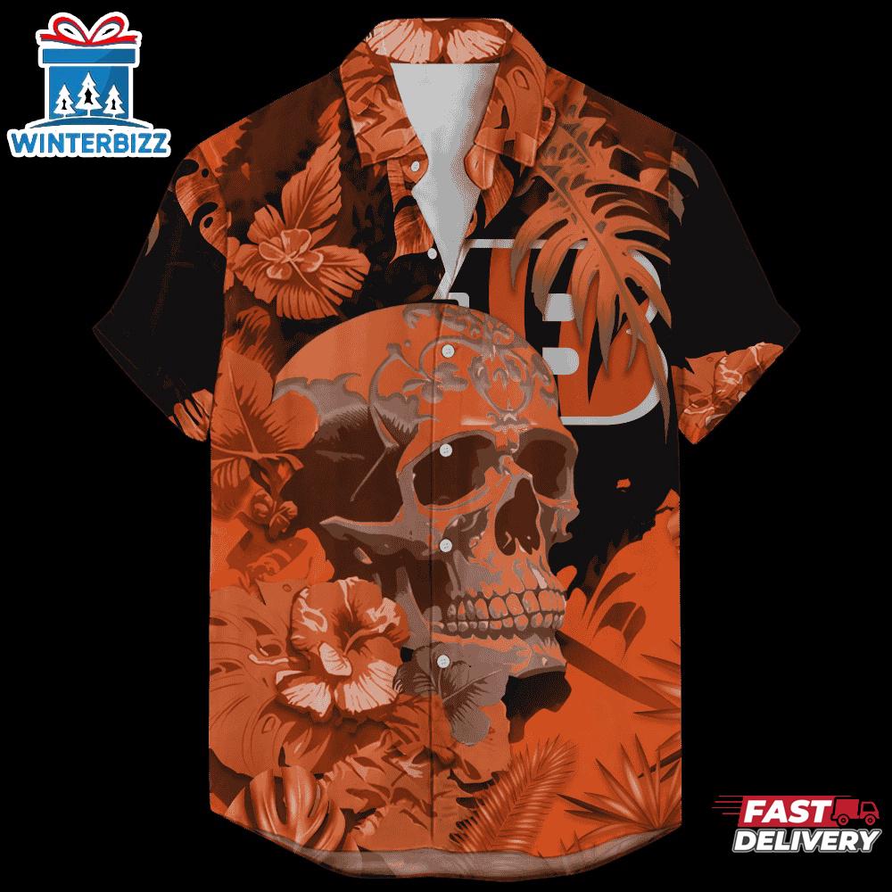 Photos Of Cincinnati Bengals Signature Skull NFL Hawaiian Shirt