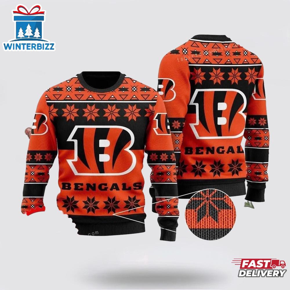 Cincinnati Bengals Ugly Christmas Sweater Shirt is a Christmas sweater with funny, humorous, and quirky patterns. It will be a meaningful gift for you to show your love and care for your loved ones.