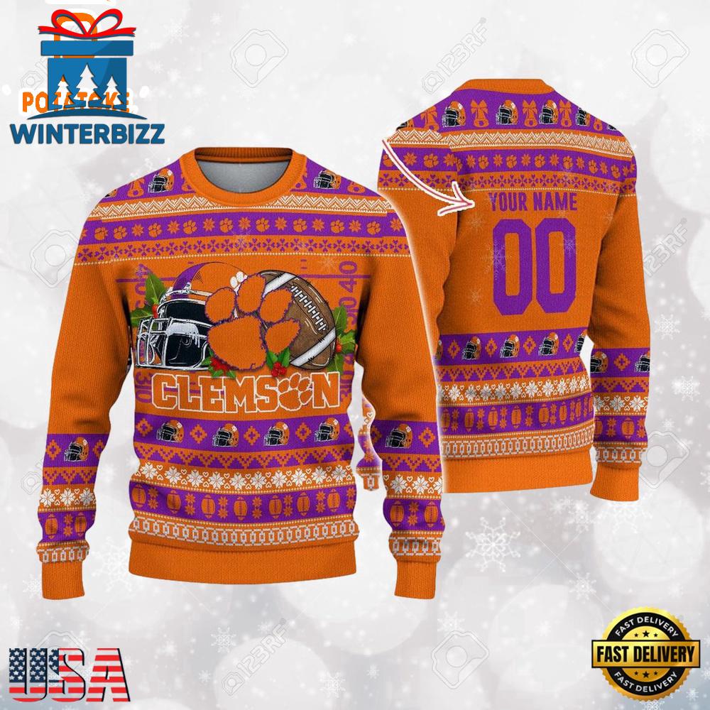 Clemson Tigers Logo Football NCAA Ugly Christmas Sweater , NCAA Christmas Sweaters is a Christmas sweater with funny, humorous, and quirky patterns. It will be a meaningful gift for you to show your love and care for your loved ones.