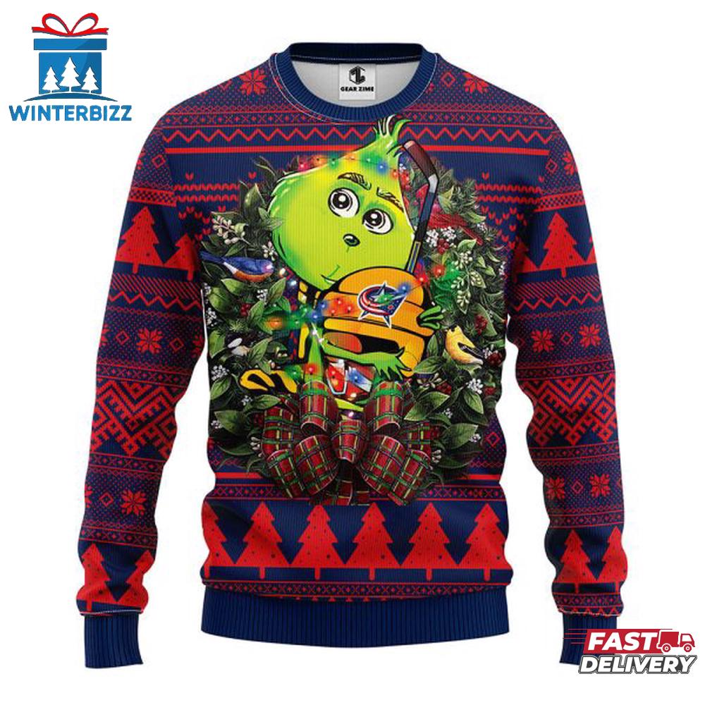 Product details: Columbus Blue Jackets Grinch Hug 3D Sweater Gift For Fans