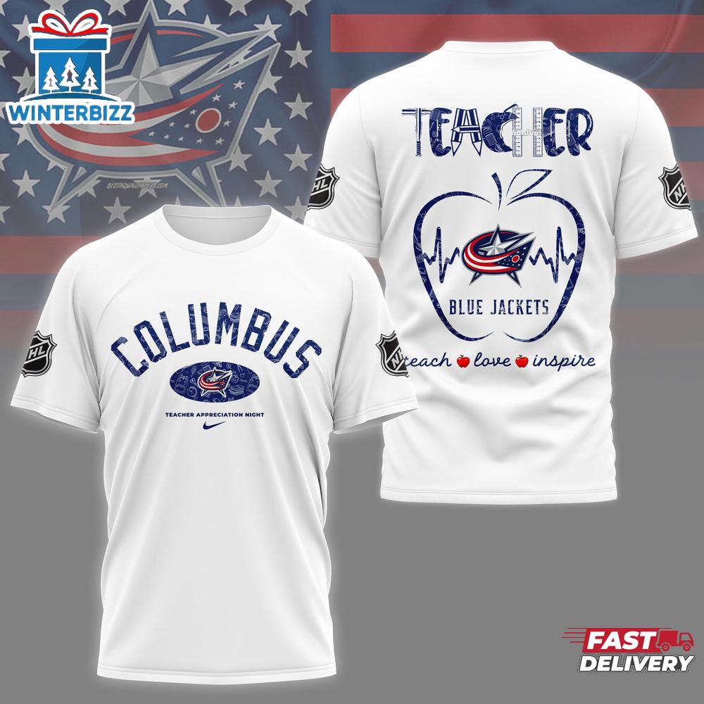 Photos Of Columbus Blue Jackets NHL Teacher Appreciation Day All Over Print T-Shirt