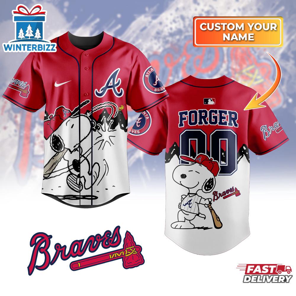 Custom Name And Number Atlanta Braves x Peanuts Baseball Jersey Shirt