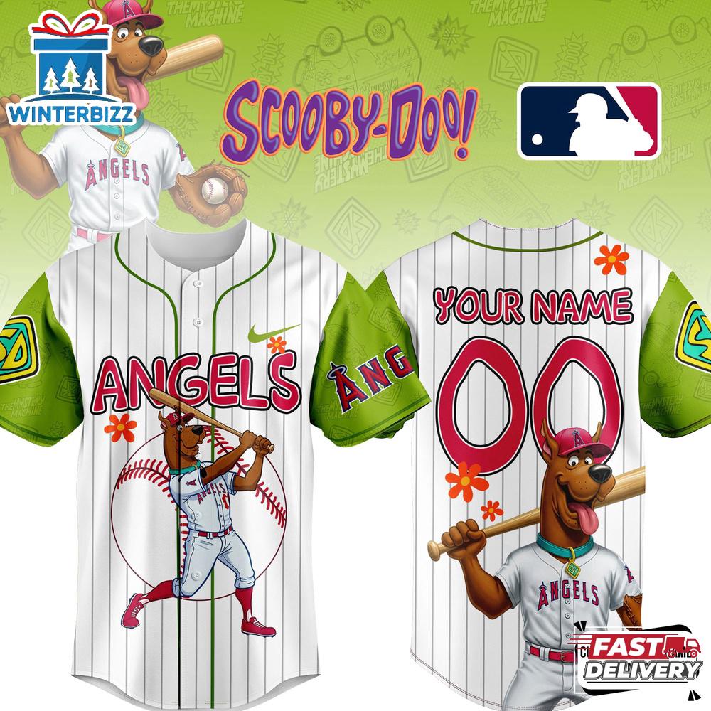 Photos Of Custom Name And Number Los Angeles Angels MLB x Scooby Doo Cartoon Baseball Jersey Shirt