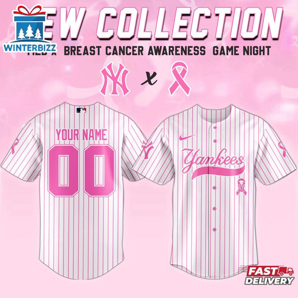 Custom Name And Number New York Yankees MLB X Breast Cancer Awareness Month Baseball Jersey For Fans