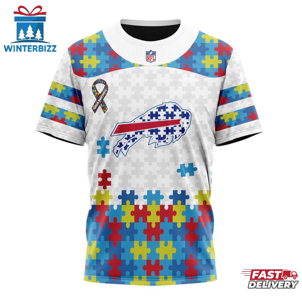Photos Of Custom Name And Number NFL Buffalo Bills Team Autism Awareness 3D T-Shirt