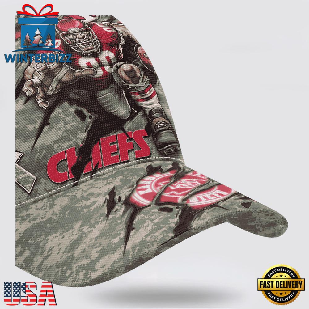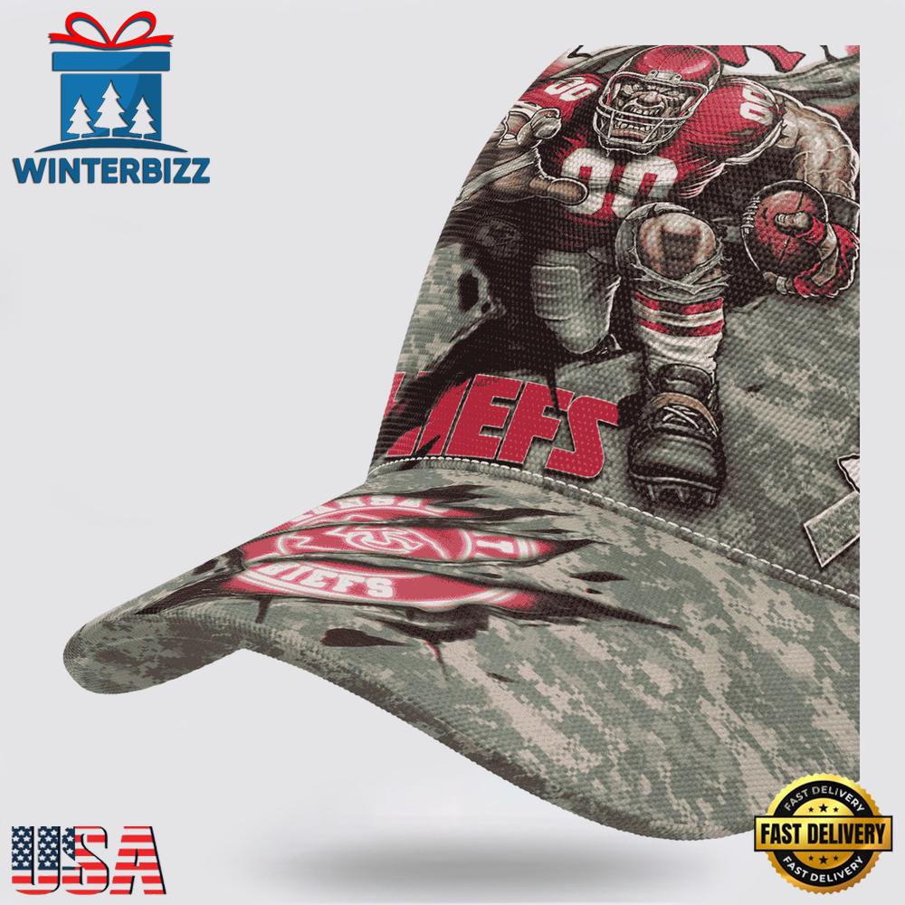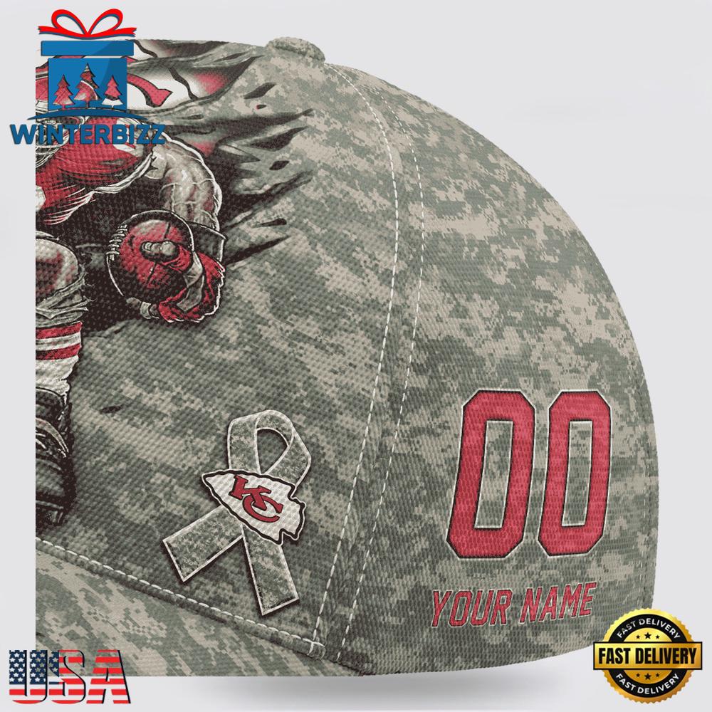 Custom Name And Number NFL Chiefs Camo Mascot New Design Classic Baseball Cap