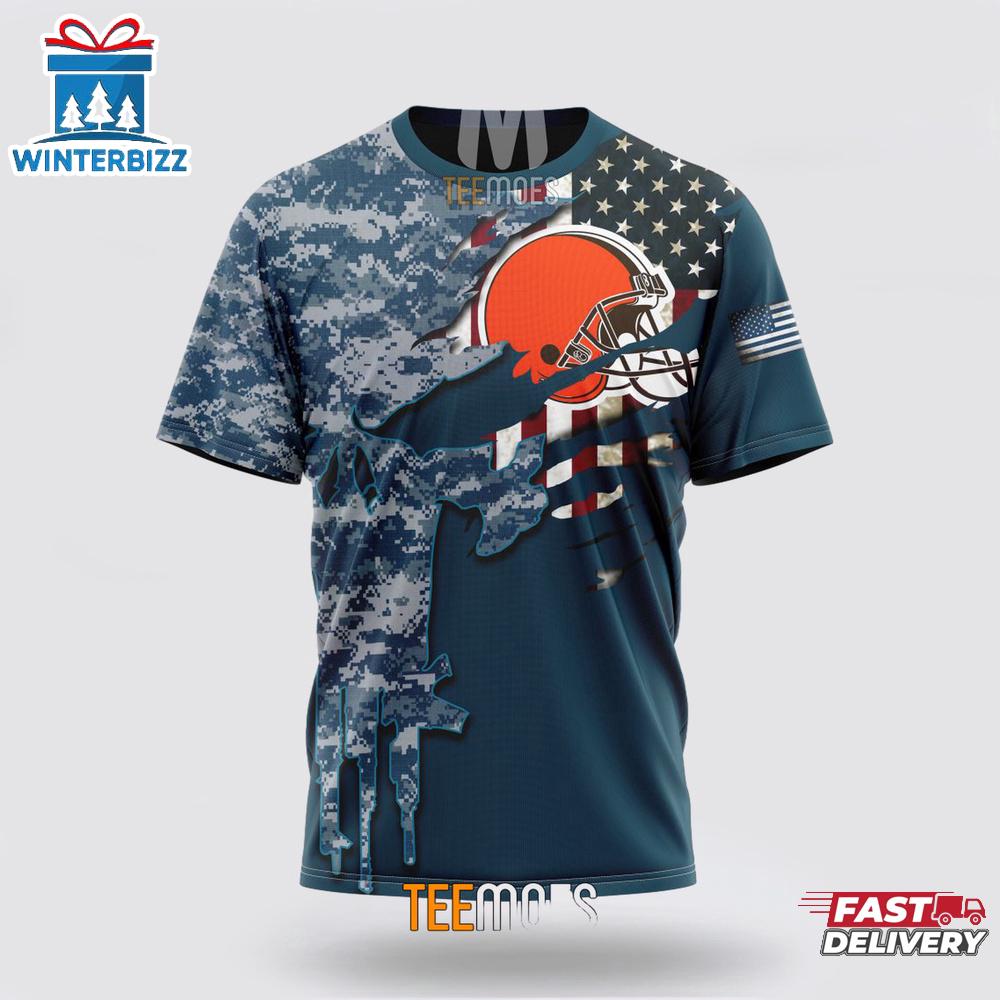 Custom Name And Number NFL Cleveland Browns Veteran Day 3D T-Shirt