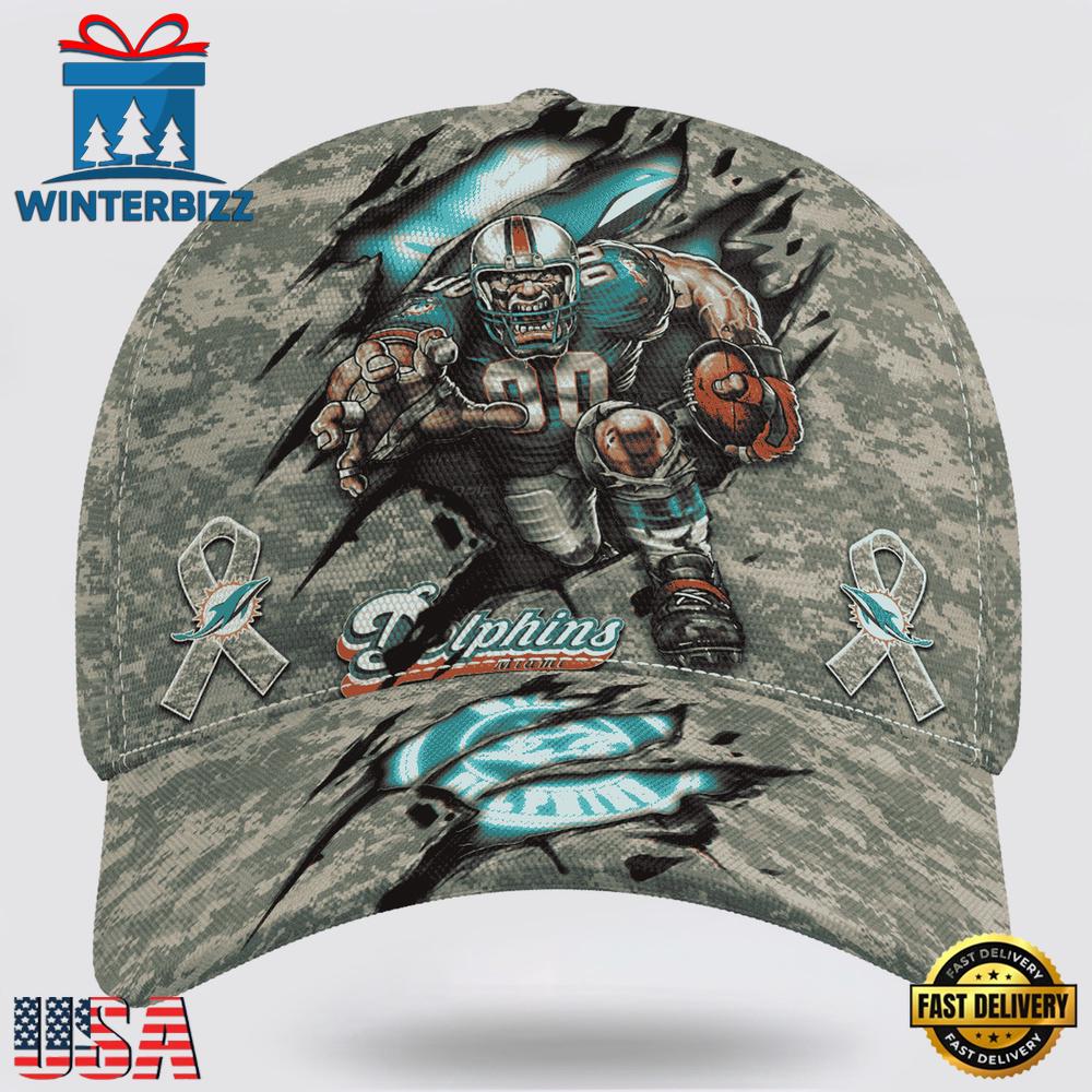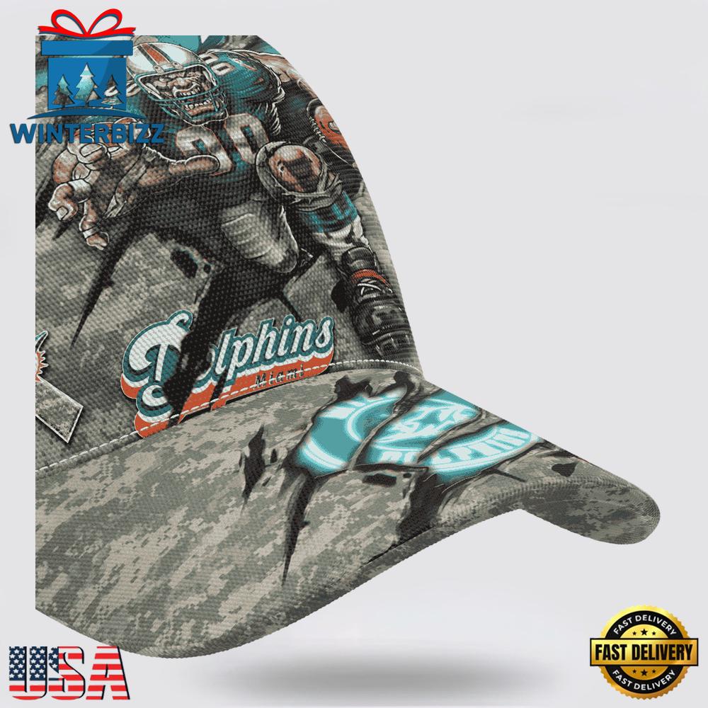 Custom Name And Number NFL Dolphins Camo Mascot New Design Classic Baseball Cap