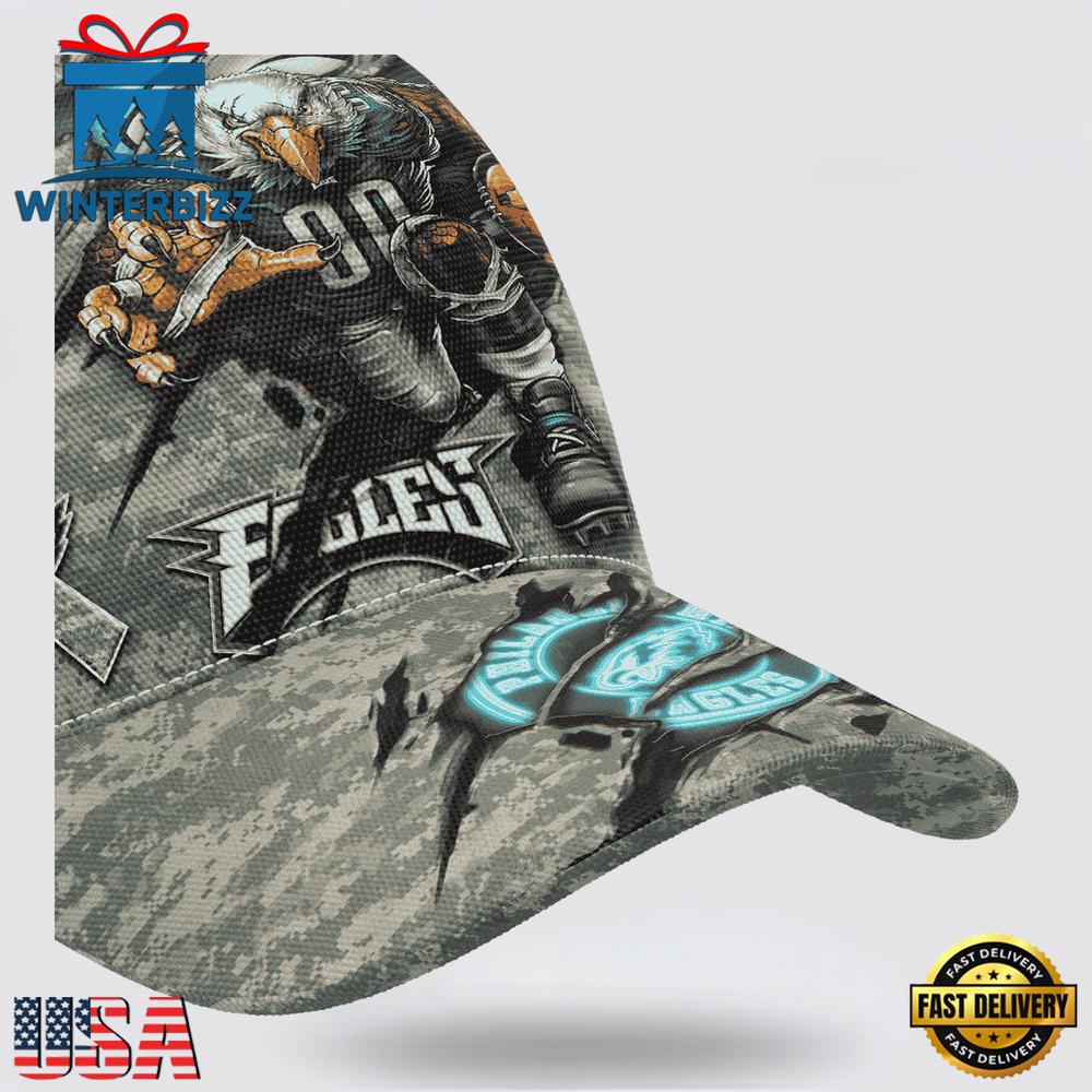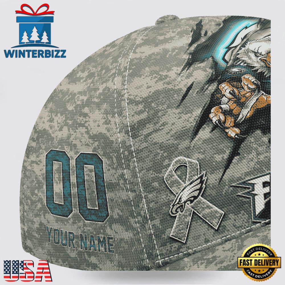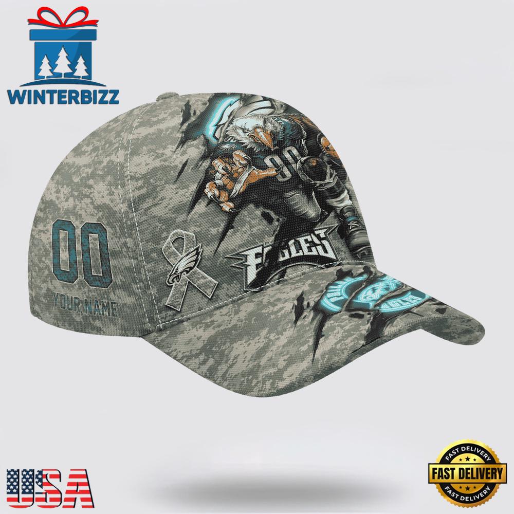 Custom Name And Number NFL Eagles Camo Mascot New Design Classic Baseball Cap