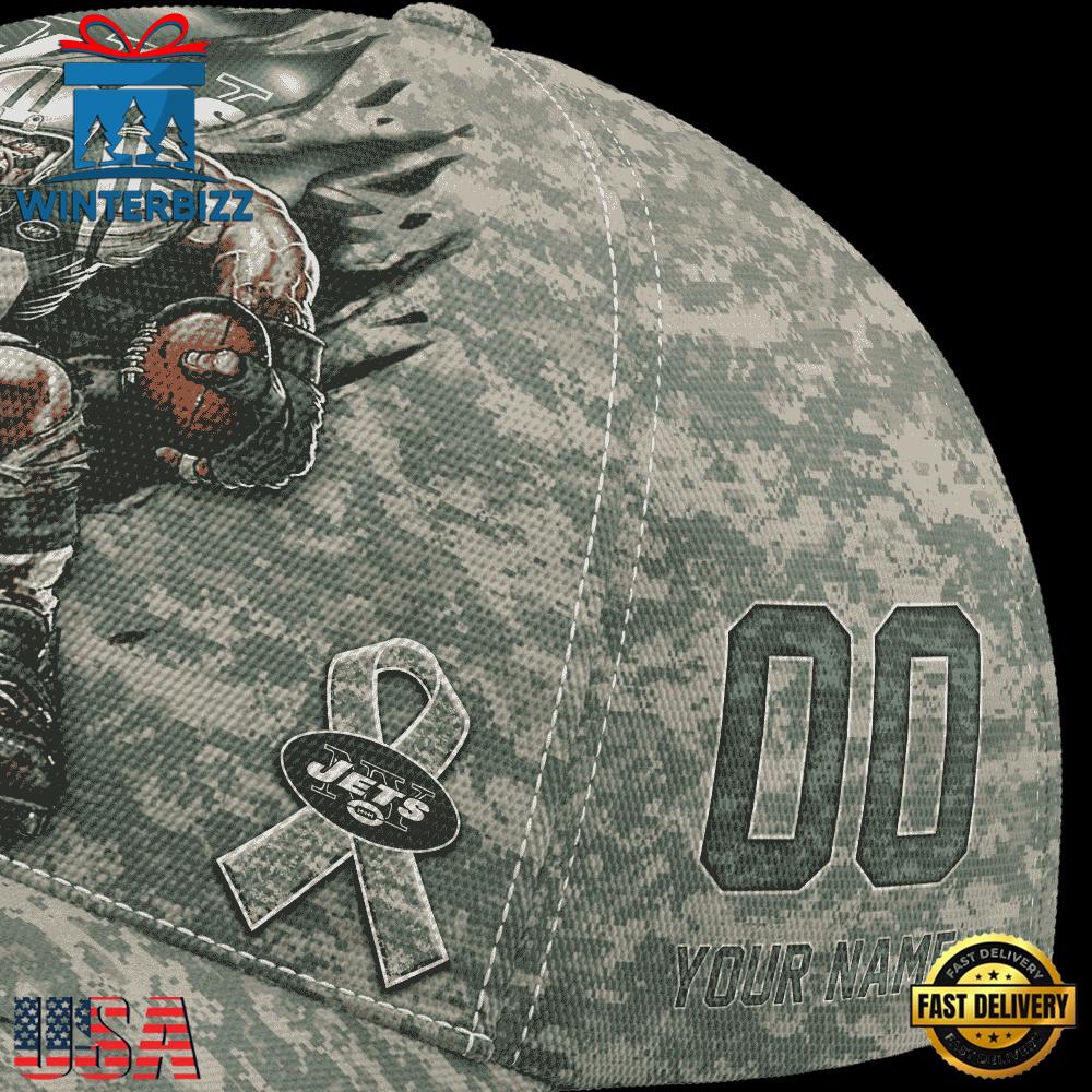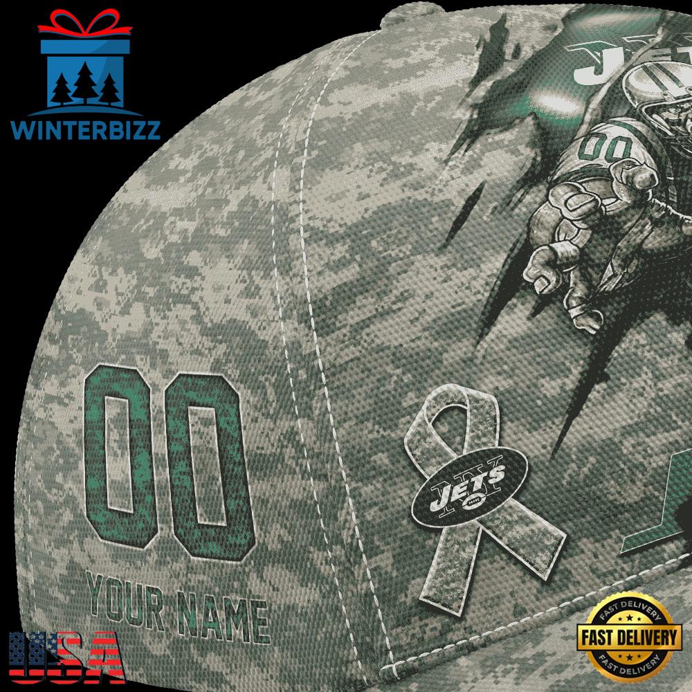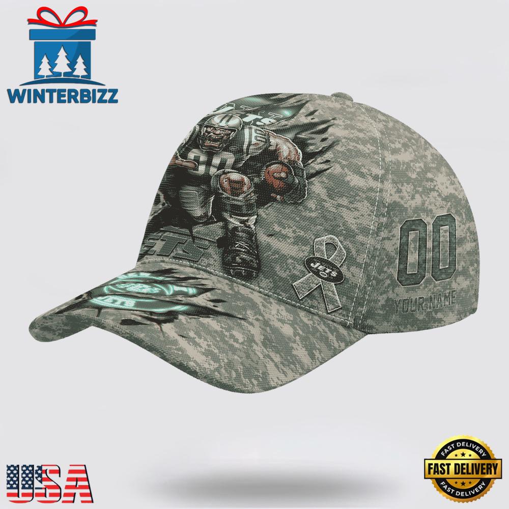 Photos Of Custom Name And Number NFL Jets Camo Mascot New Design Classic Baseball Cap