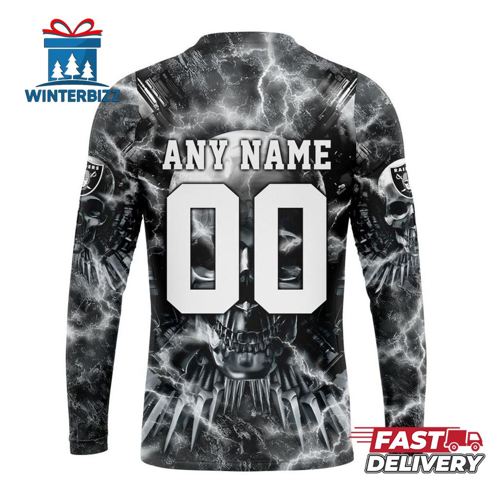 Product details: Custom Name And Number NFL Las Vegas Raiders Expendables Skull Halloween 3D Sweatshirt