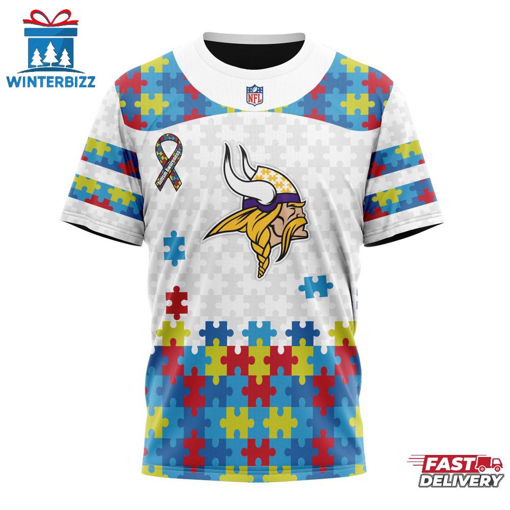 Photos Of Custom Name And Number NFL Minnesota Vikings Team Autism Awareness 3D T-Shirt