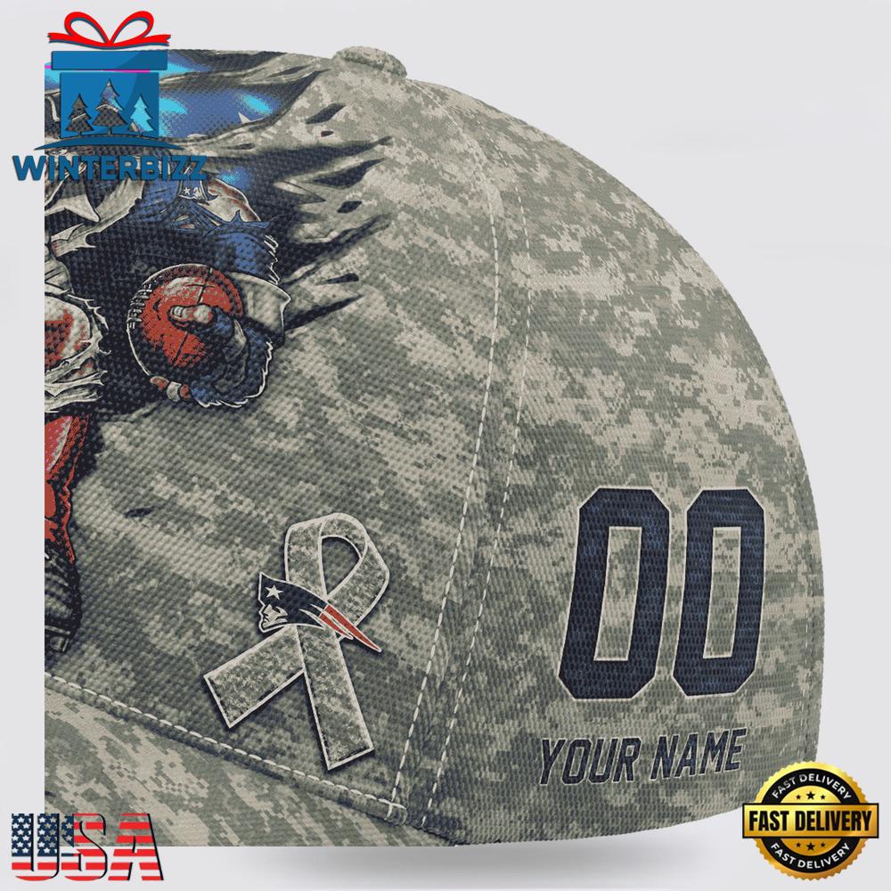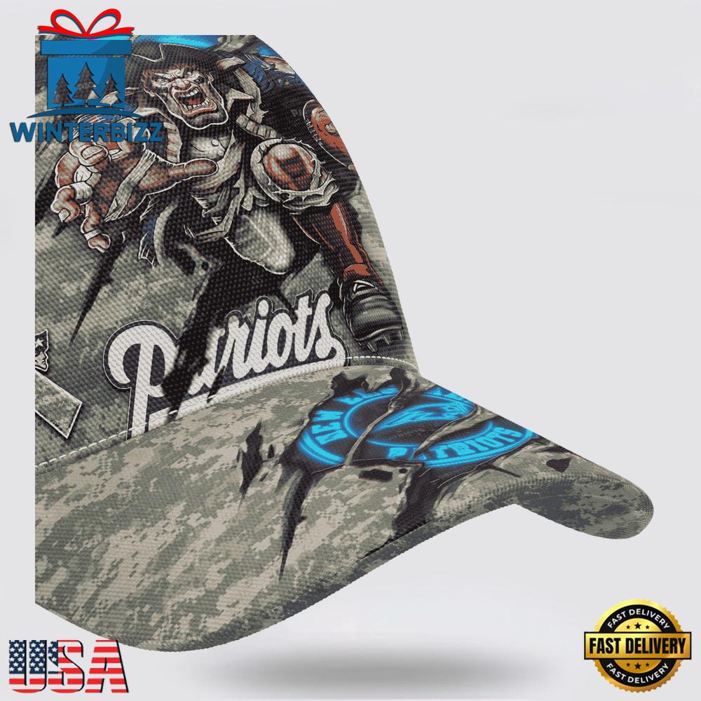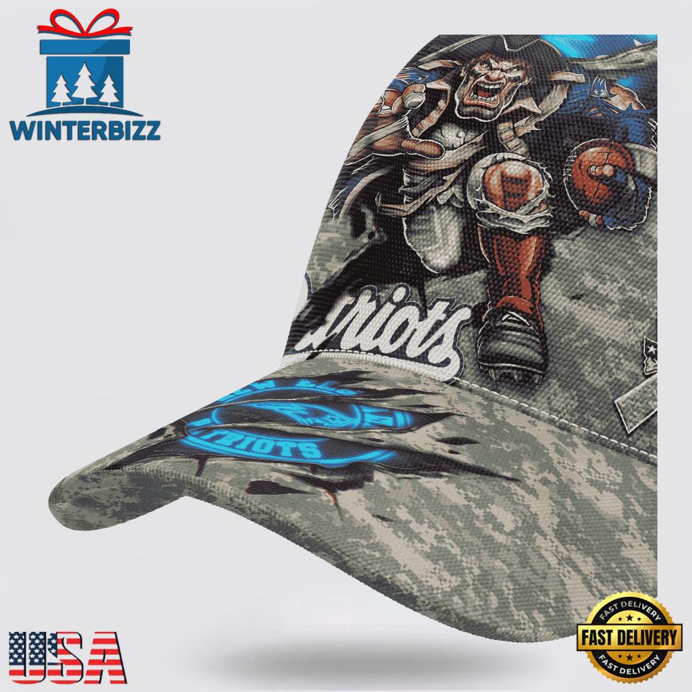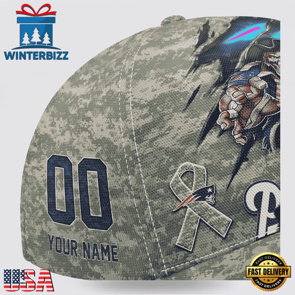 Custom Name And Number NFL Patriots Camo Mascot New Design Classic Baseball Cap