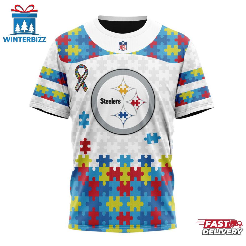 Custom Name And Number NFL Pittsburgh Steelers Team Autism Awareness 3D T-Shirt