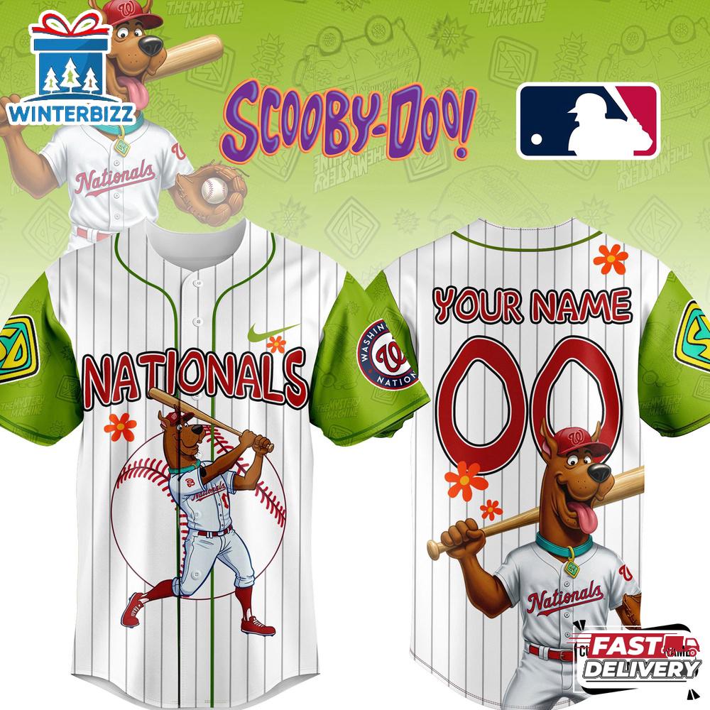 Custom Name And Number Washington Nationals MLB x Scooby Doo Cartoon Baseball Jersey Shirt