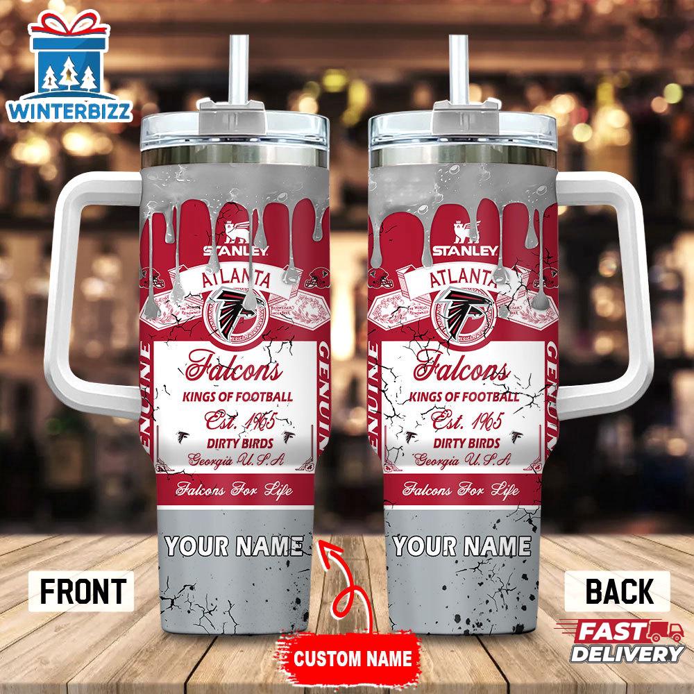 Photos Of Custom Name Atlanta Falcons NFL Kings Of Football Stainless Steel Tumbler 40Oz With Handle