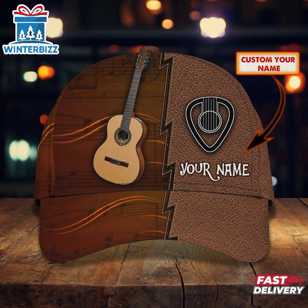 Photos Of Custom Name Brown Guitar Baseball Cap Gift For Adults