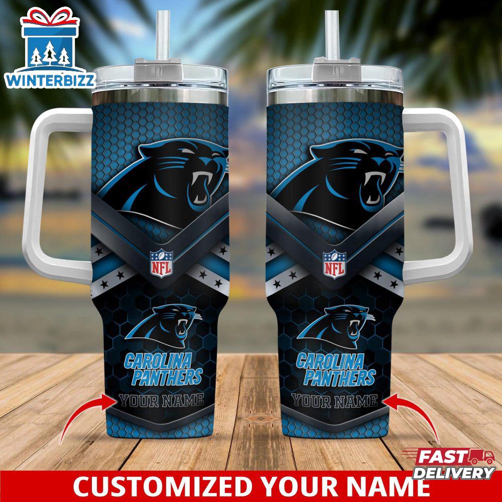 Photos Of Custom Name Carolina Panthers Tumbler 40Oz With Handle For Fan