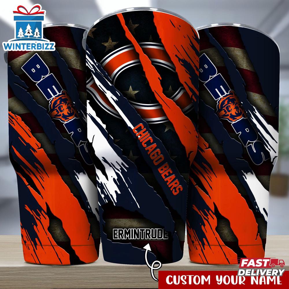 Photos Of Custom Name Chicago Bears NFL Logo Team Tumbler Gift For Fans
