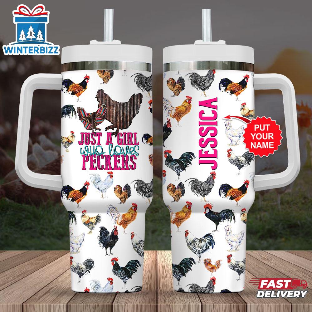 Photos Of Custom Name Chicken Pattern Tumbler 40Oz Handle For Fans