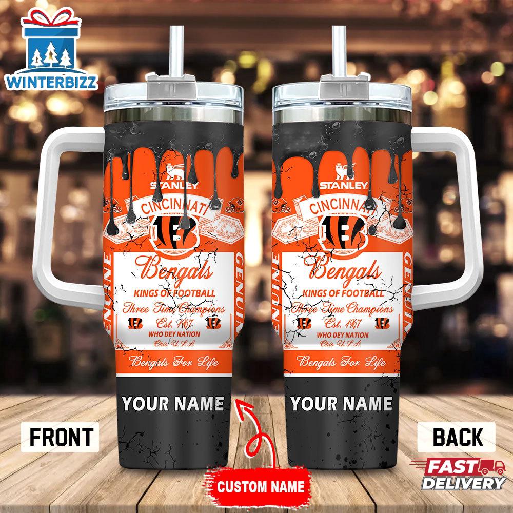 Photos Of Custom Name Cincinnati Bengals NFL Kings Of Football Stainless Steel Tumbler 40Oz With Handle