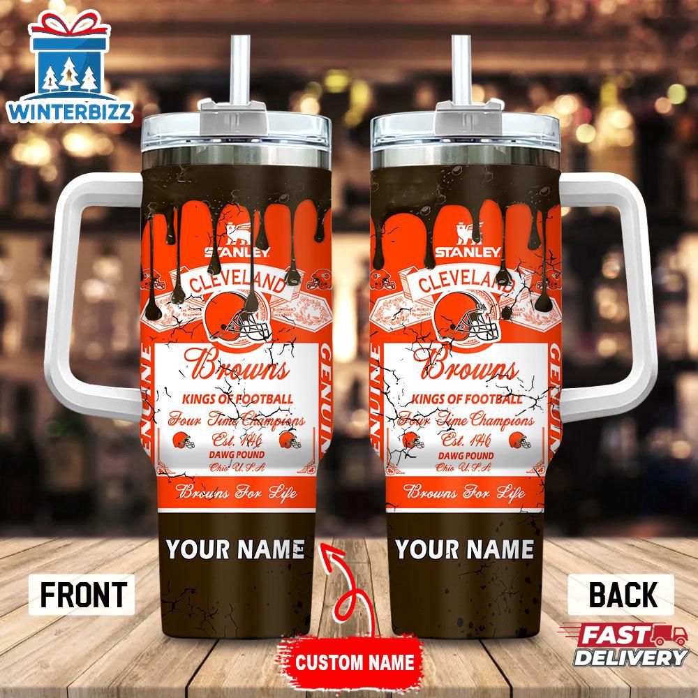 Photos Of Custom Name Cleveland Browns NFL Kings Of Football Stainless Steel Tumbler 40Oz With Handle