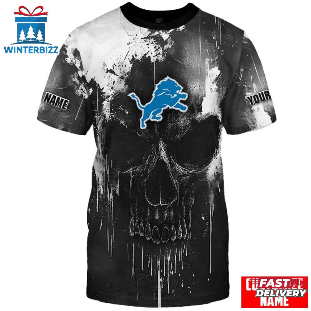 Photos Of Custom Name Detroit Lions Skull Face NFL All Over Print T-Shirt