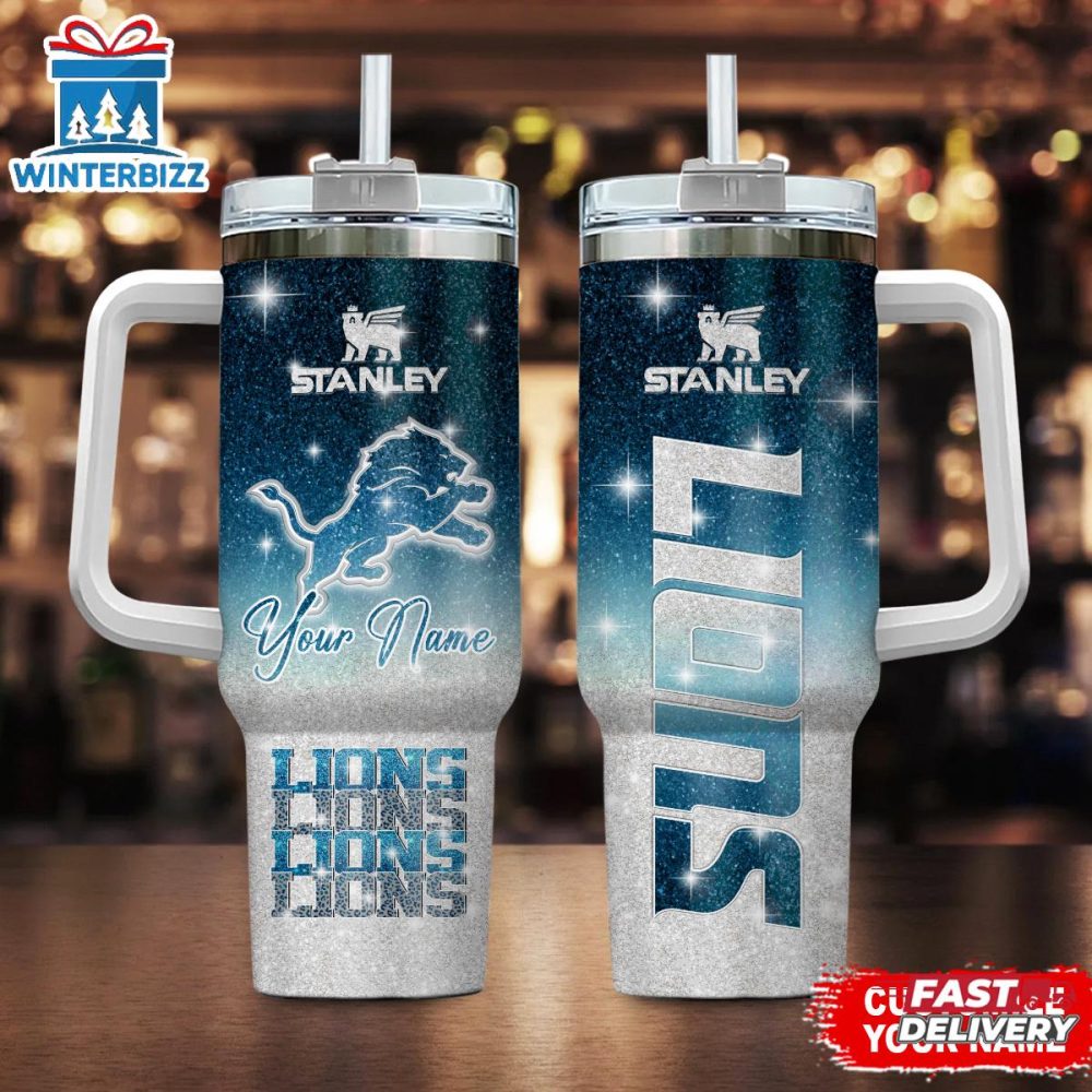 Product details: Custom Name Detroit Lions Team Pattern Tumbler 40Oz With Handle