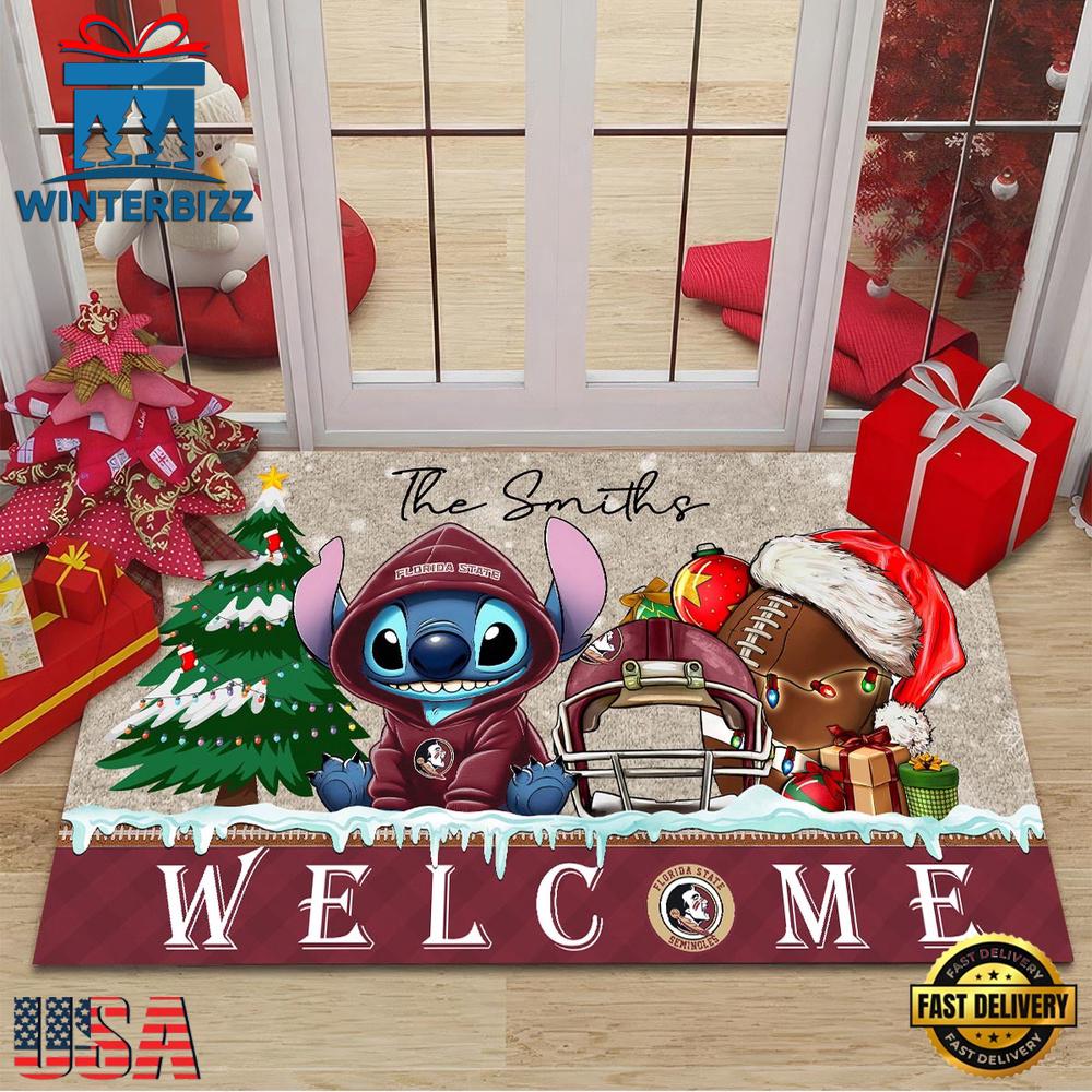 Custom Name Florida State Seminoles Cute Stitch Welcome Christmas Doormat , Front Doormat Trendy