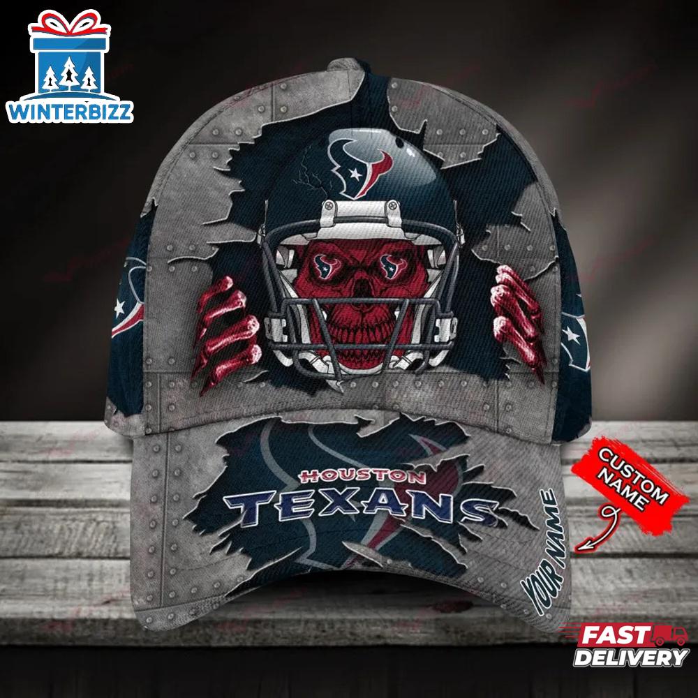 Custom Name Houston Texans NFL Football Team Skull Baseball Cap